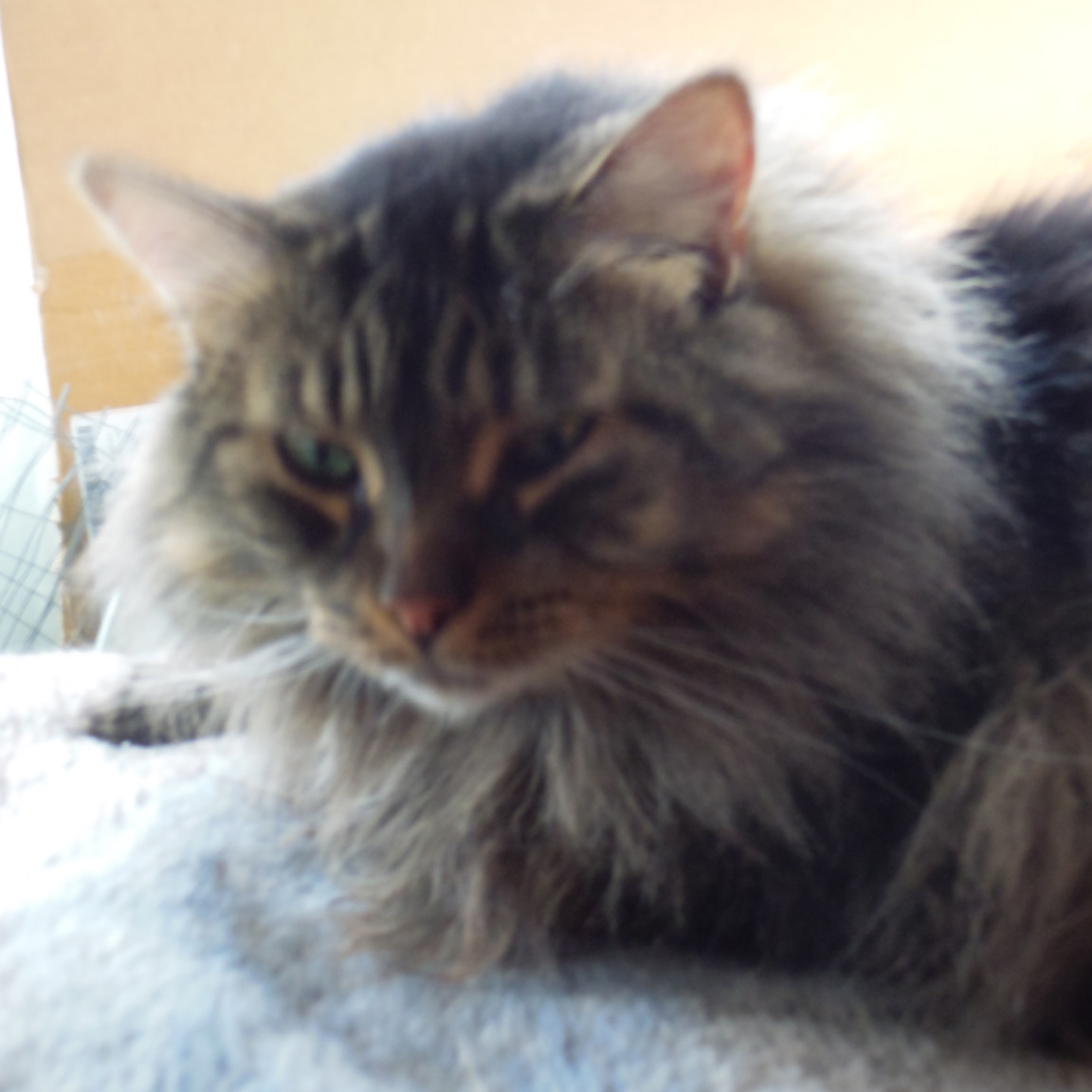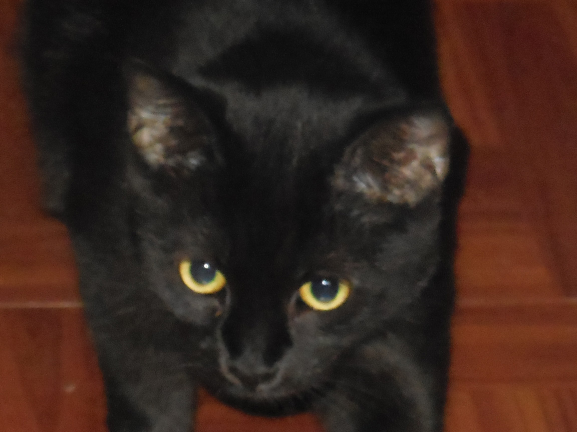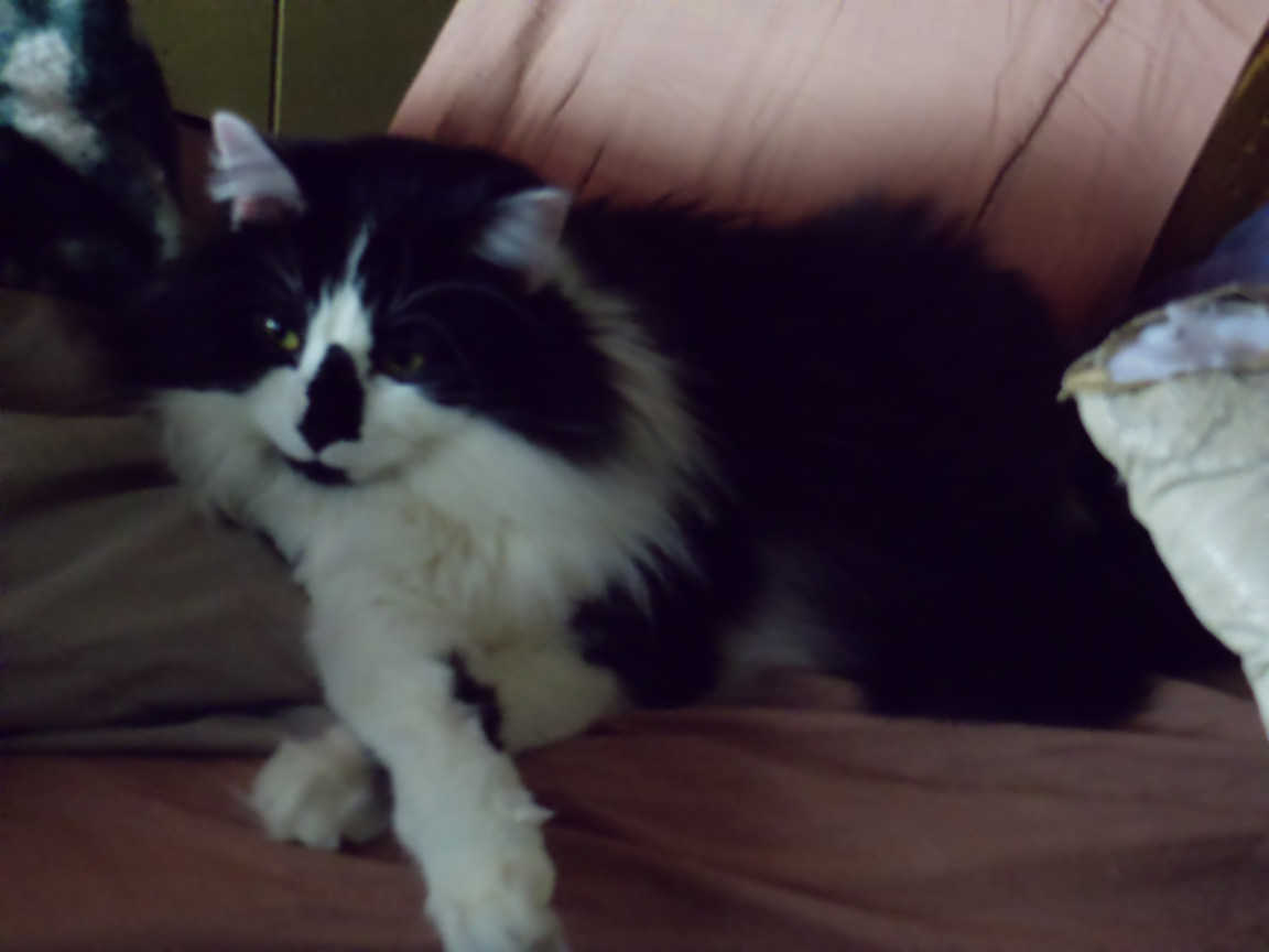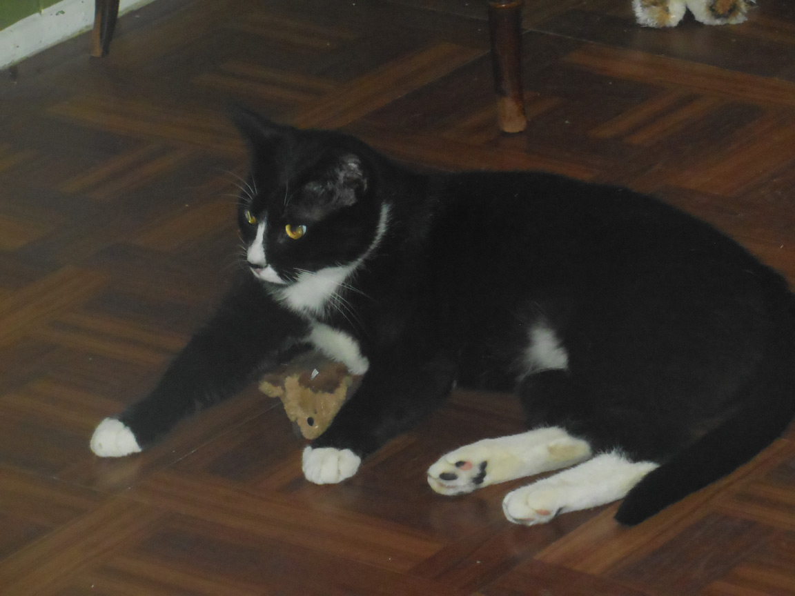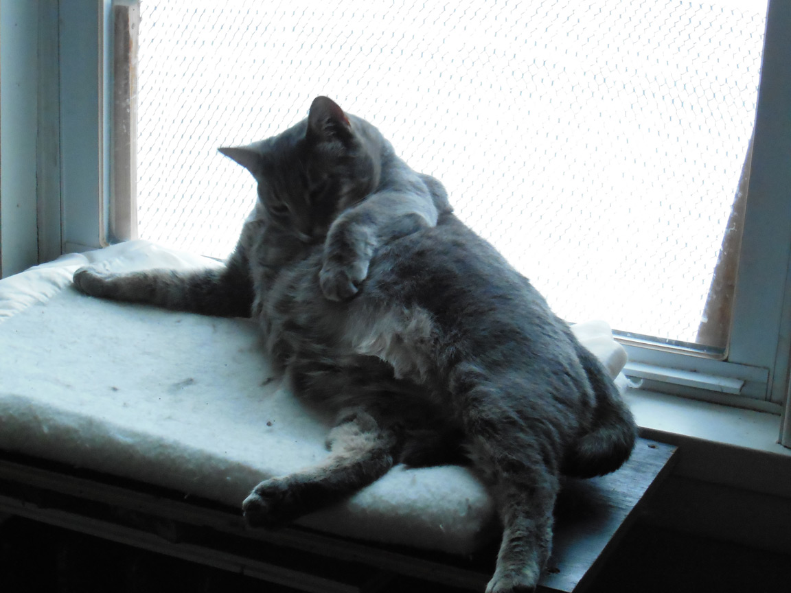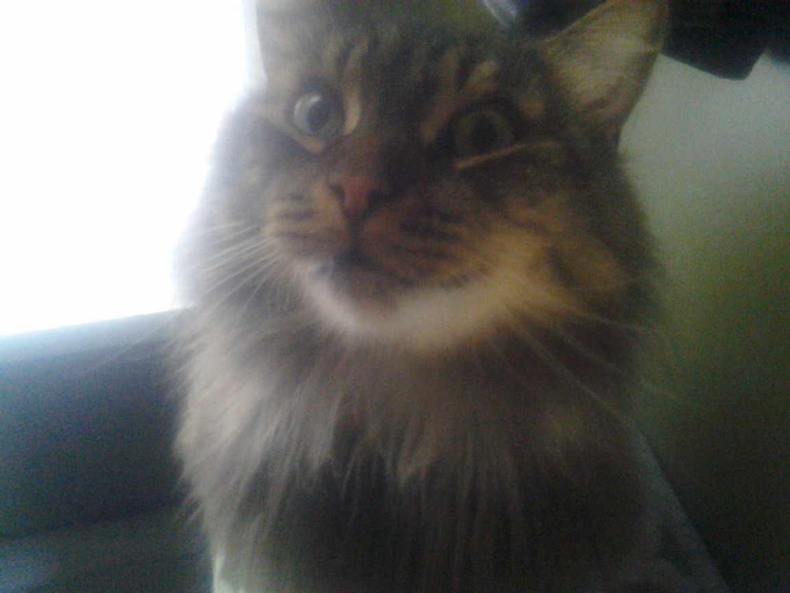CLEO age 9, was adopted from the Clifton shelter in 2012, and it's uncertain whether she was born on the streets or lost/abandoned. She is docile and handlable, extremely affectionate and will sit in a lap. She gets along with other cats, but tends to be partial to males. She is also quite happy by herself and would do fine as an only cat. She love to climb to high spots and will sit on your shoulder!