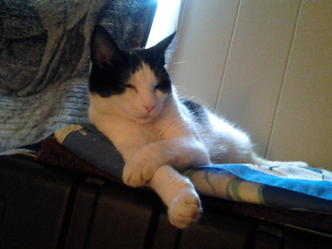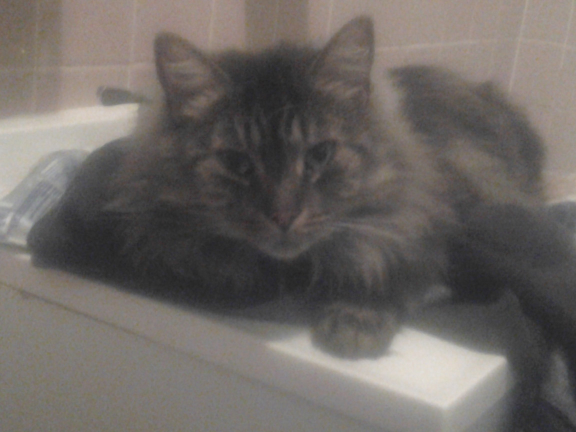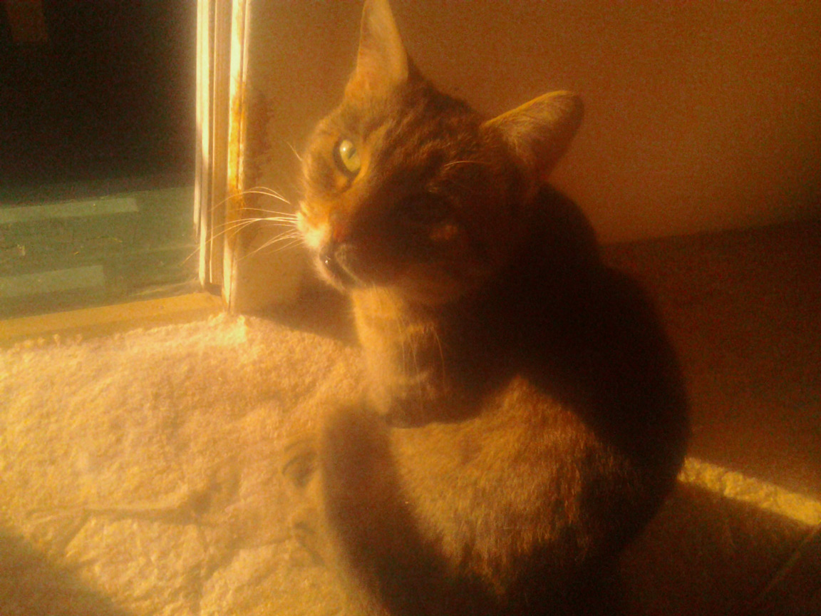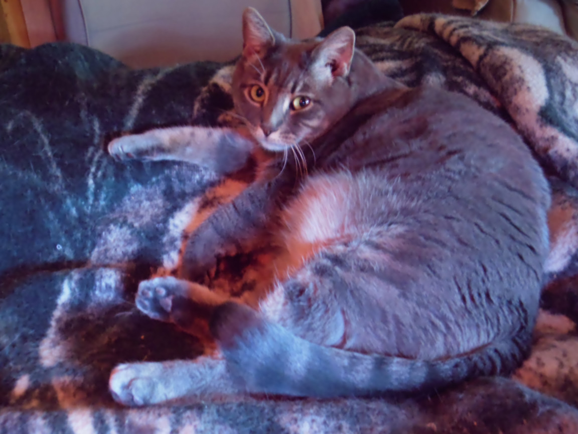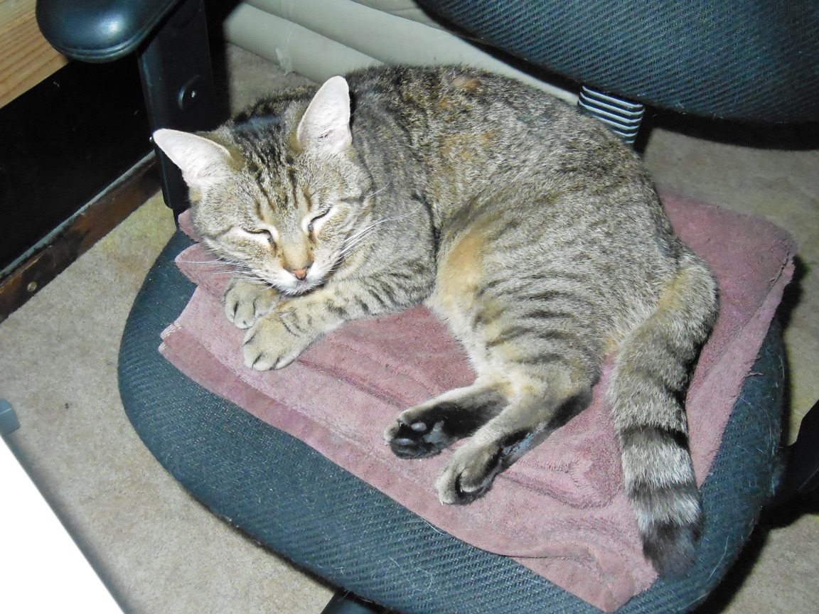 CLEO age 9, was adopted from the Clifton shelter in 2012, and it's uncertain whether she was born on the streets or lost/abandoned. She is docile and handlable, extremely affectionate and will sit in a lap. She gets along with other cats, but tends to be partial to males. She is also quite happy by herself and would do fine as an only cat. She love to climb to high spots and will sit on your shoulder!