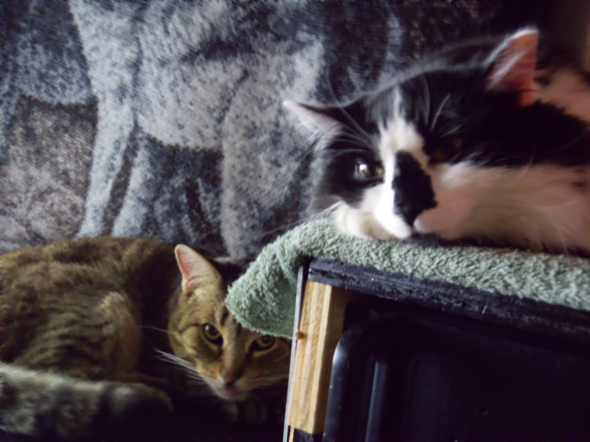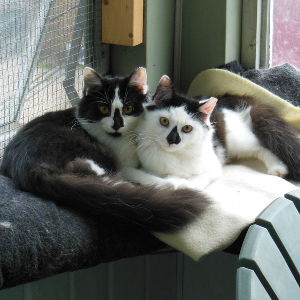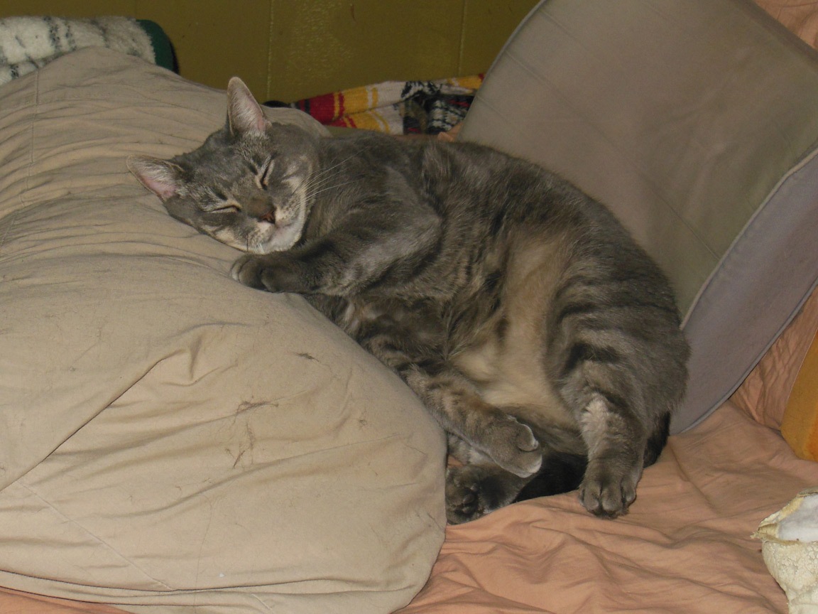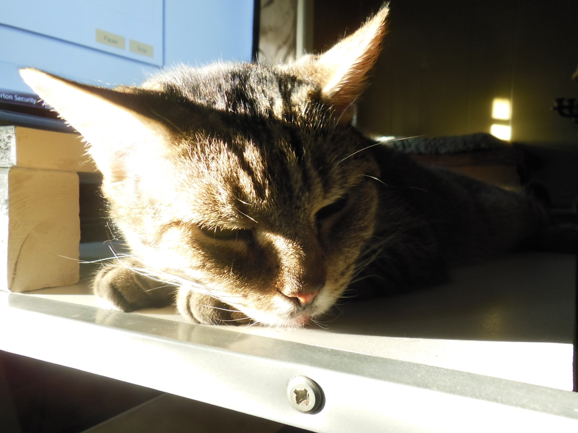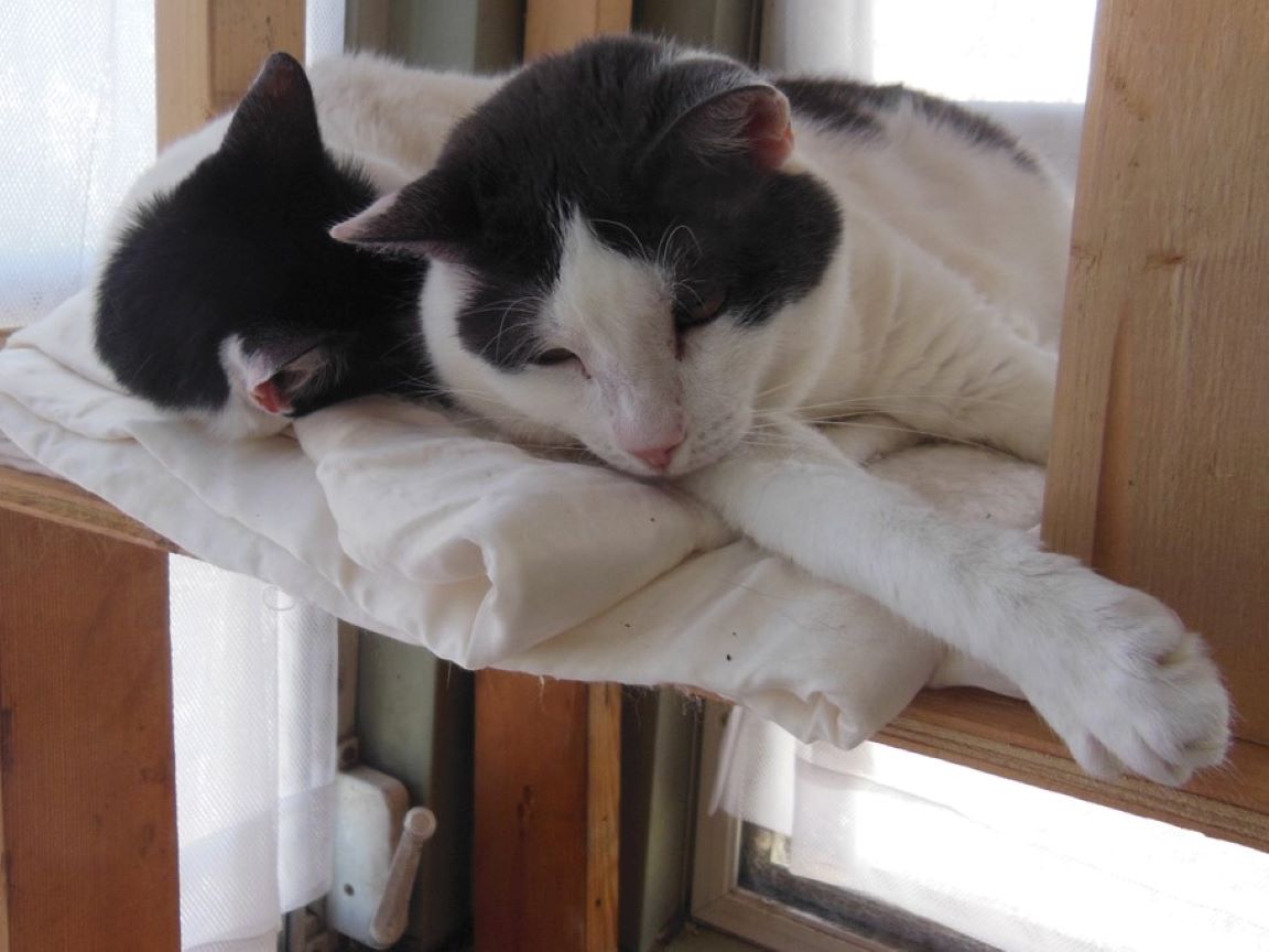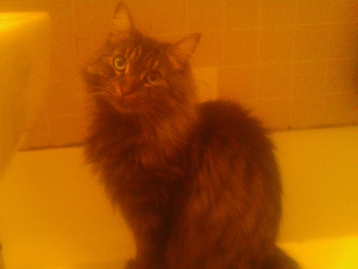 CLEO age 9, was adopted from the Clifton shelter in 2012, and it's uncertain whether she was born on the streets or lost/abandoned. She is docile and handlable, extremely affectionate and will sit in a lap. She gets along with other cats, but tends to be partial to males. She is also quite happy by herself and would do fine as an only cat. She love to climb to high spots and will sit on your shoulder!
