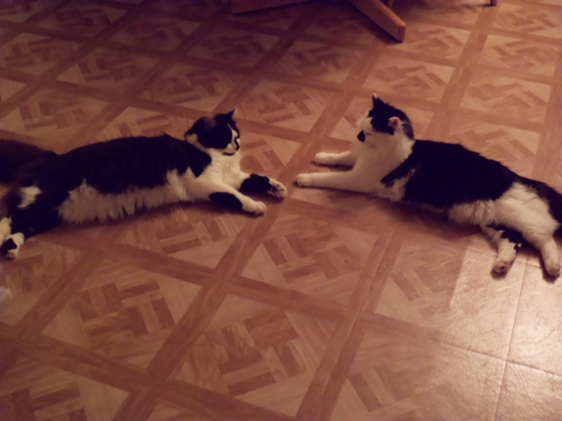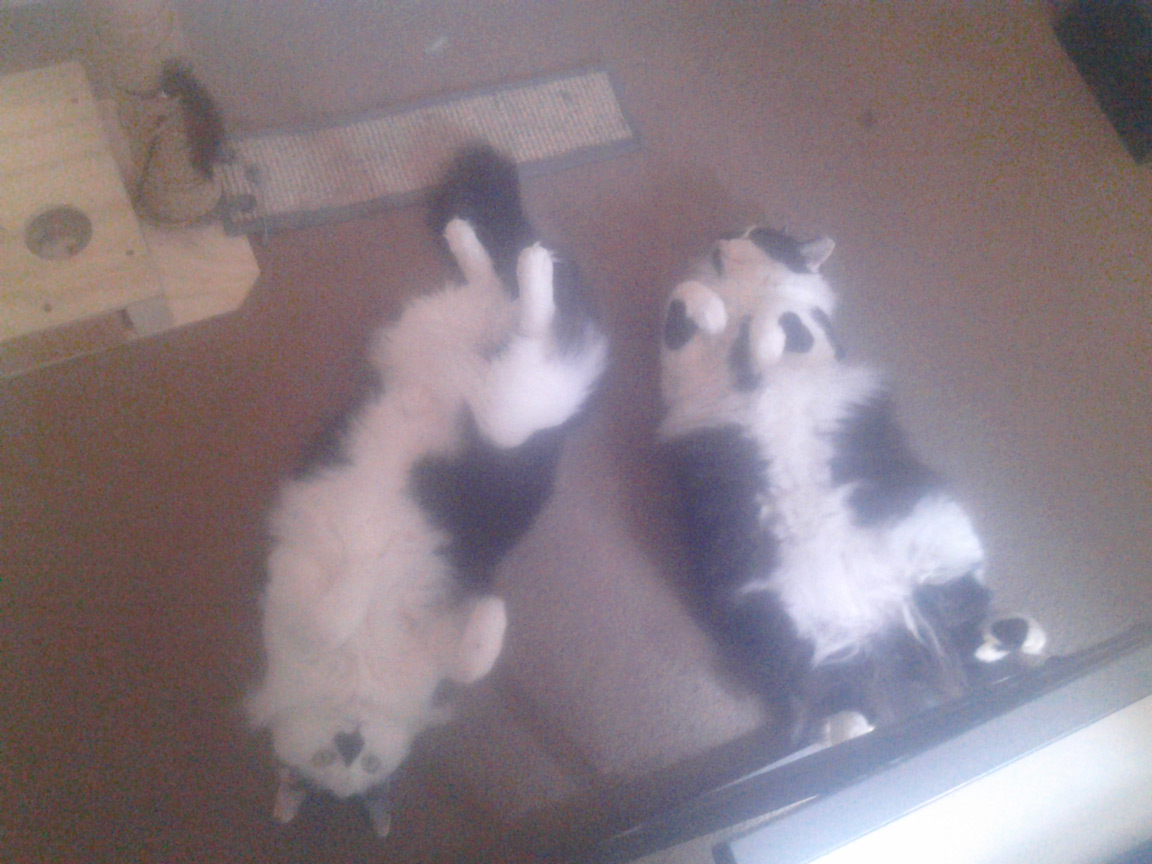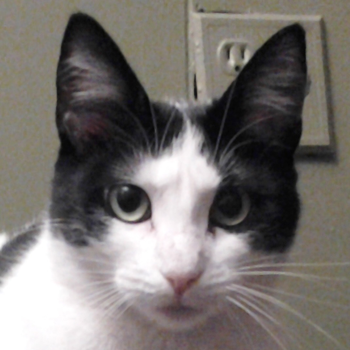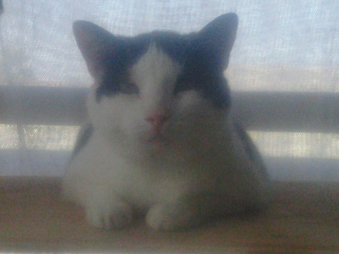 Cleo is small, has short white hair with black patches, and long ears. A very easy cat, and would be good for someone with little or no experience, as she was Vin's first cat. SHE MUST REMAIN AN INDOOR CAT!
