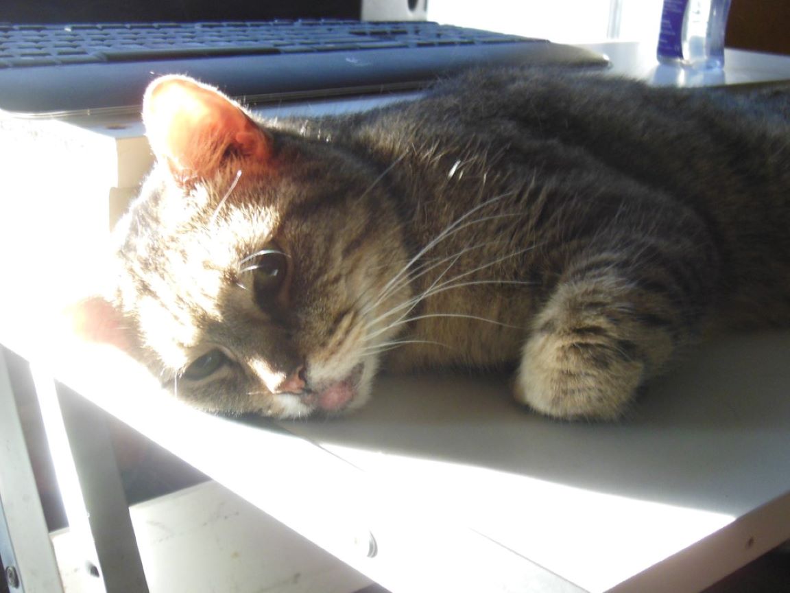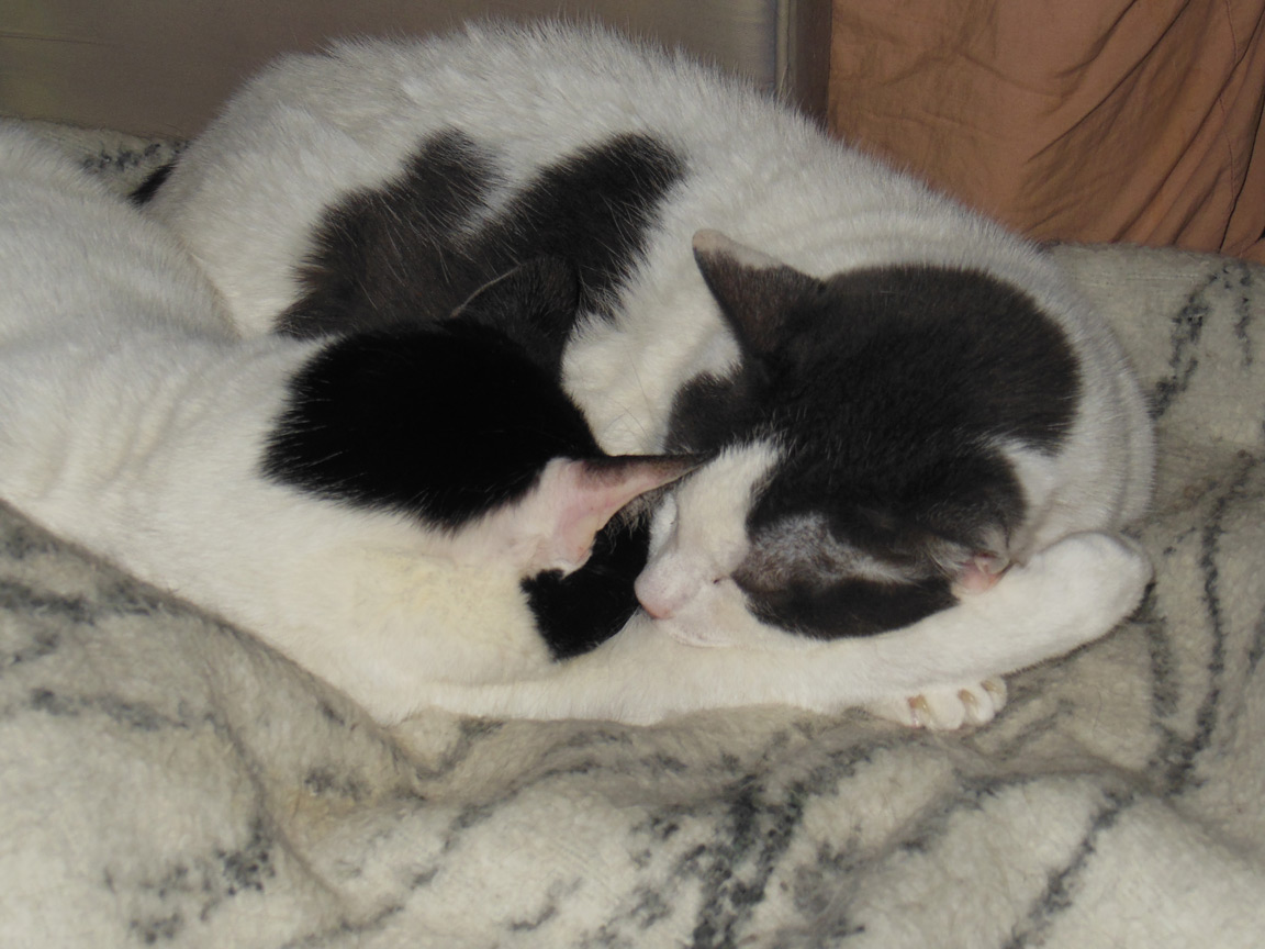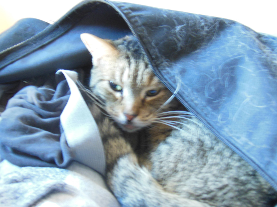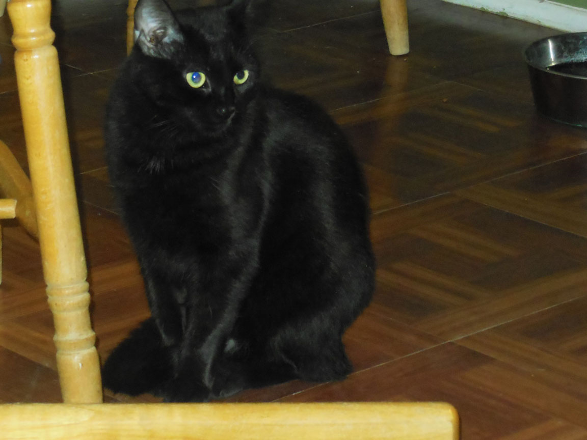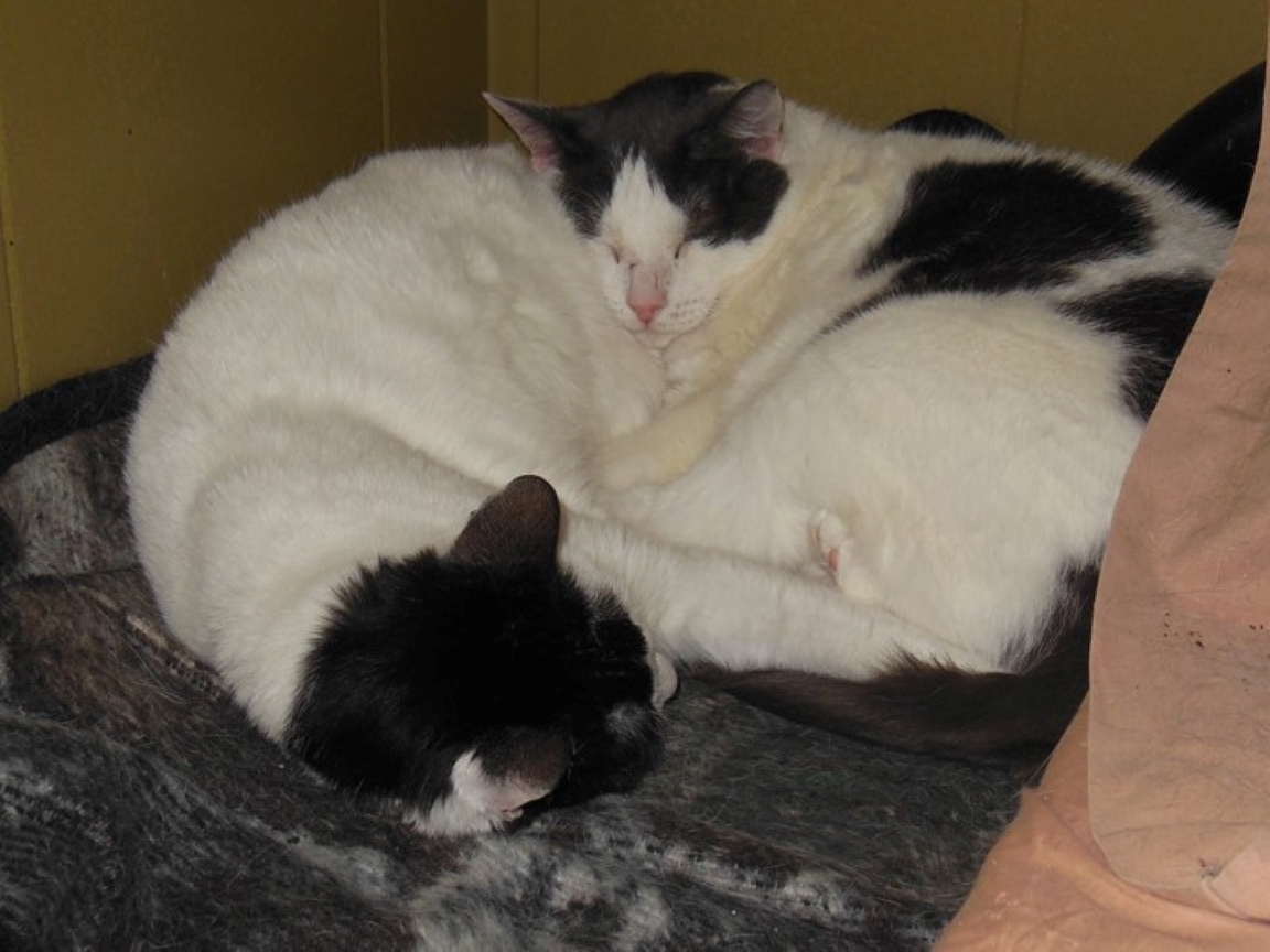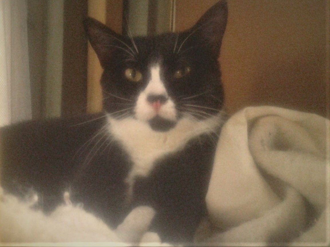 CLEO age 9, was adopted from the Clifton shelter in 2012, and it's uncertain whether she was born on the streets or lost/abandoned. She is docile and handlable, extremely affectionate and will sit in a lap. She gets along with other cats, but tends to be partial to males. She is also quite happy by herself and would do fine as an only cat. She love to climb to high spots and will sit on your shoulder!
